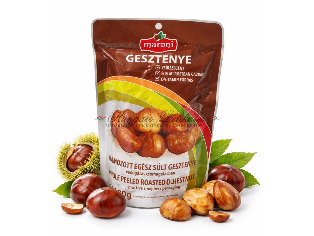 Pečené jedlé kaštany jsou tradiční delikatesou s jemně nasládlou chutí a měkkou, lehce moučnatou strukturou. Díky šetrnému zpracování si zachovávají svou přirozenou chuť i nutriční hodnoty. Jsou připraveny k okamžité konzumaci a neobsahují žádné přidané látky – pouze 100 % pečené kaštany.