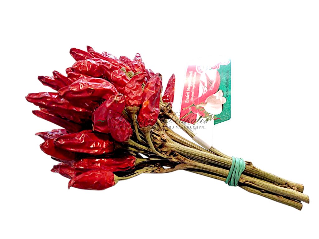 Chili papričky svázané do svazku jsou ideální volbou pro všechny milovníky pikantních chutí. Sušené, aromatické a plné intenzivní ostrosti dodají vašim jídlům ten správný šmrnc. Svazek papriček je nejen praktický na skladování, ale zároveň krásně ozdobí vaši kuchyň či jídelní prostor. Perfektní pro dochucení omáček, masitých pokrmů, polévek i marinád — s našimi chili papričkami proměníte každý recept v ohnivý kulinářský zážitek!