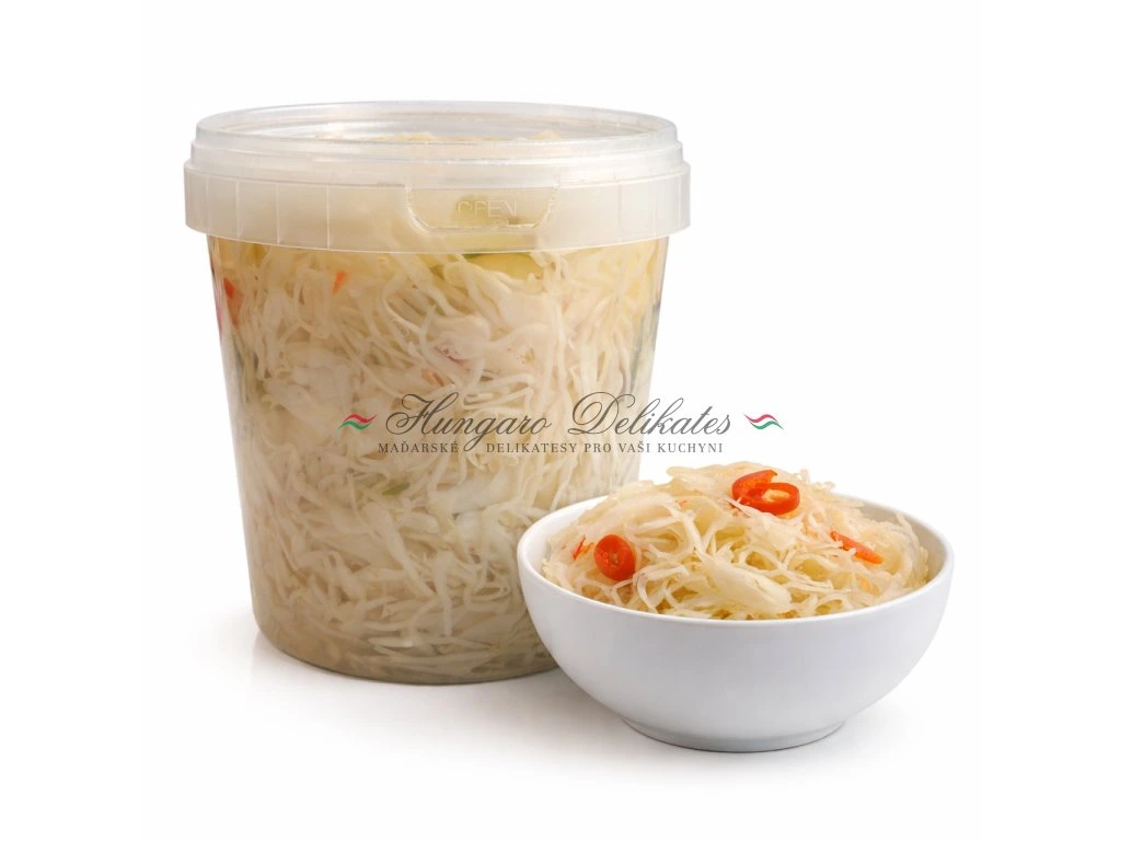 Složení: pitná voda, zelí, okurka, paprika, meloun, cibulky, kyselina octová, kuchyňská sůl, konzervant: benzoan sodný, regulátor kyselosti: chlorid vápenatý, sladidla: acesulfam K, sacharinát sodný, aroma koření, antioxidanty: kyselina citrónová, disiřičitan draselný.