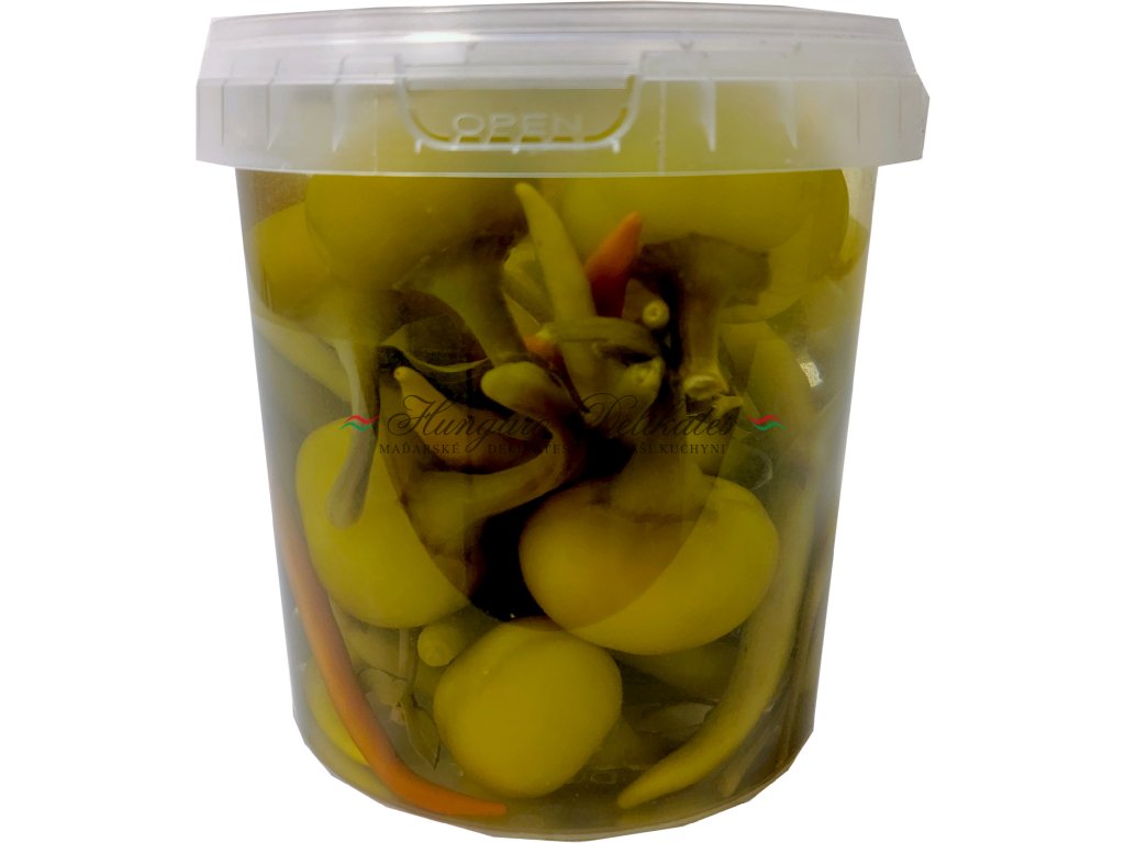 Pitná voda, paprika, kyselina octová, kuchyňská sůl, konzervant: benzoan sodný, regulátor kyselosti: chlorid vápenatý, antioxidanty: kyselina citrónová, disiřičitan draselný, aroma koření.