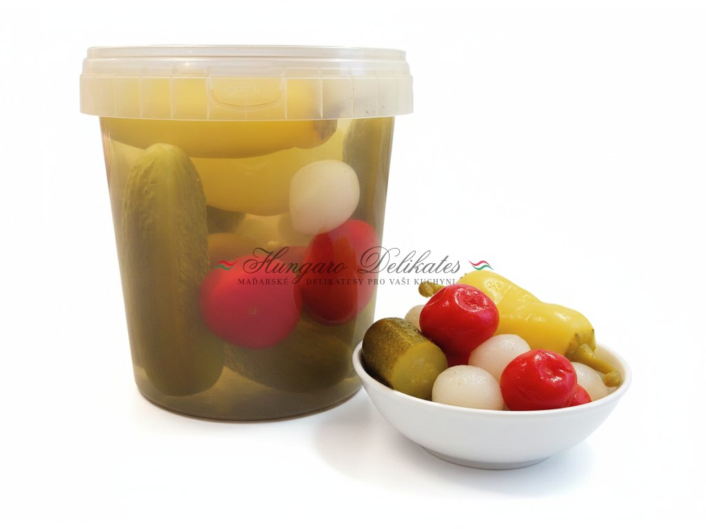 Pikantní mix zeleniny ve sladkokyselém nálevu představuje tradiční zeleninovou specialitu pro milovníky výraznějších chutí. Obsahuje vyváženou kombinaci zelí, okurek, paprik a cibulek, které společně vytvářejí harmonii svěží kyselosti, lehké sladkosti a příjemné pikantnosti.