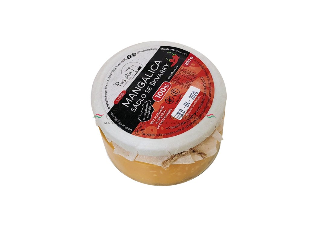 Dopřejte si říznou variantu tradiční pochoutky! Tyto škvarky z mangalice jsou připraveny z kvalitní slaniny tradičně chovaných prasat, pomalu vyškvařeny do dokonalé křupavosti a zalité jemným mangalicovým sádlem. Navíc jsou dochuceny pečlivě vyváženou směsí chilli, která jim dodává příjemný říz bez zbytečného přepálení.