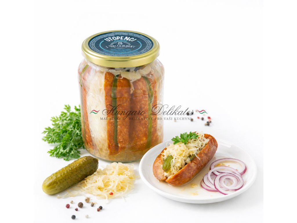 Utopenci – špekáčky v kyselém nálevu, sterilováno.