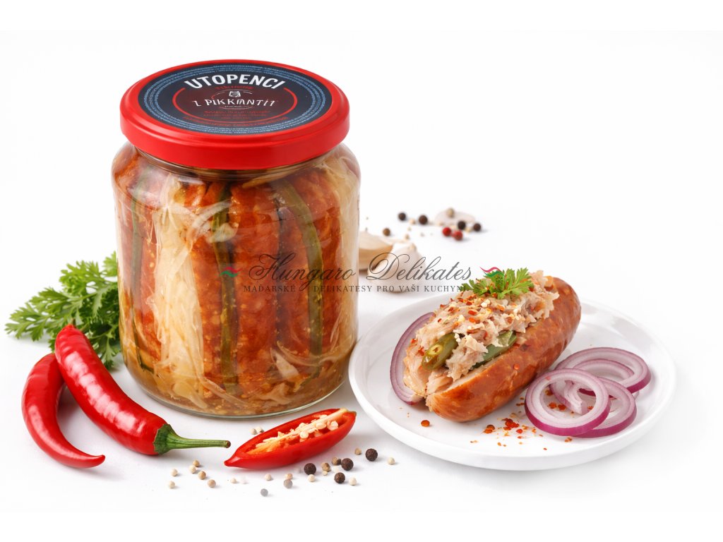 Utopenci – špekáčky v kyselém nálevu, sterilováno.